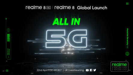 Realme 8 5G global launch takes place April 22nd, using all-new MediaTek 5G chipset.